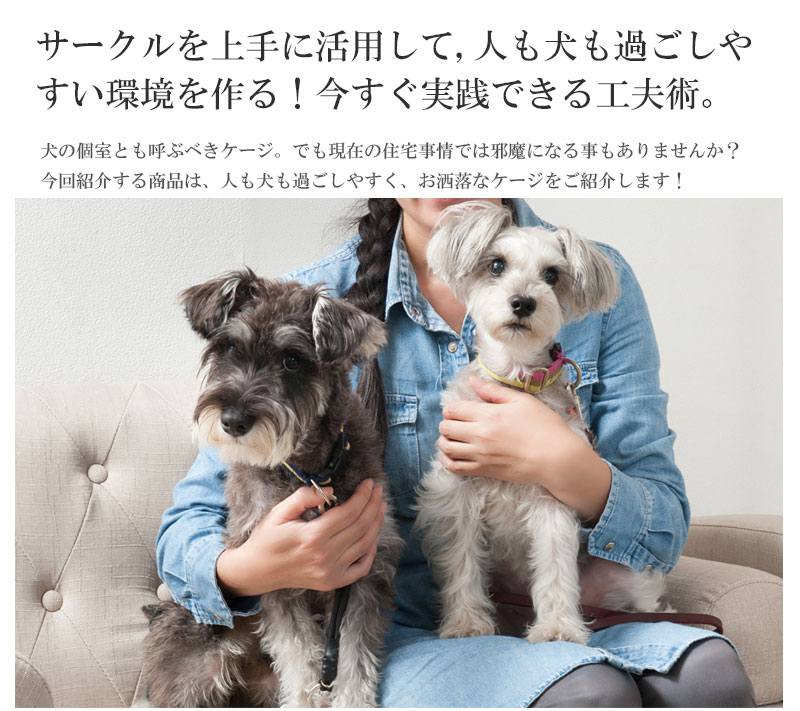 収納も付いたドッグサークルは、愛犬をサークルに入れるときだけ広げるので、普段は収納キャビネットのように使えるのが魅力。